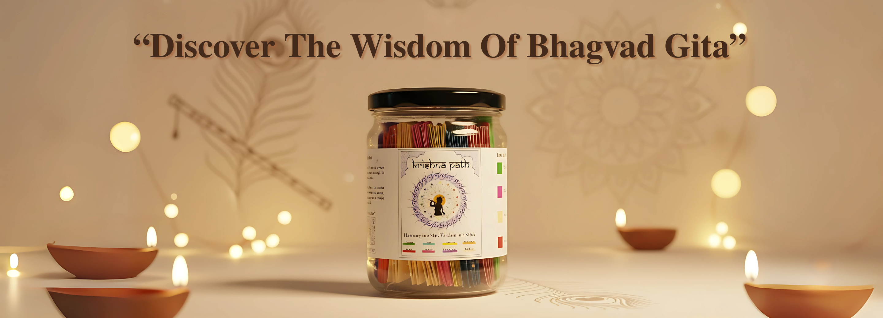 The Gita Jar is a simple yet powerful way to bring the timeless wisdom of the Bhagavad Gita into your daily life. Inside the jar are 64 beautifully designed slips, each containing a carefully chosen Gita shloka with its meaning and life insight.