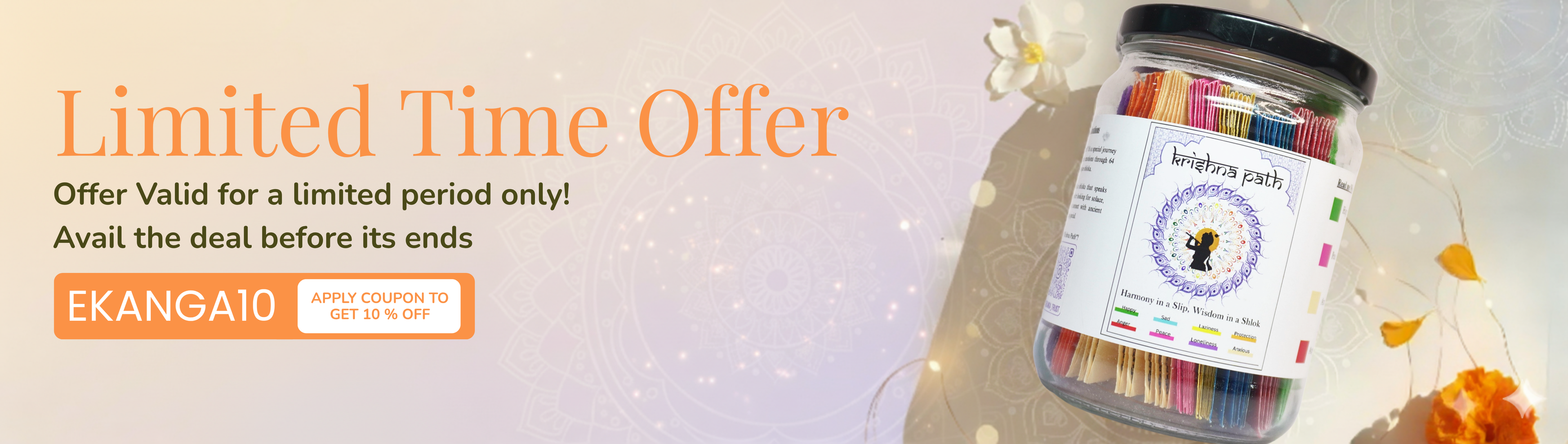 EKANGA brings ancient wisdom into modern life for emotional well-being. Our Krishna Path jar, inspired by the Bhagavad Gita, offers daily insights to navigate emotions like joy, sadness, and anger. Each slip provides practical guidance to find peace