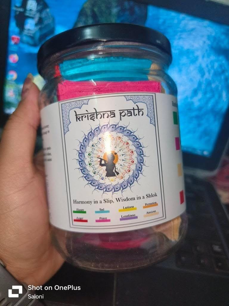 The Krishna Path jar is for anyone seeking clarity, peace, or inspiration. It's particularly helpful for those navigating emotional challenges, such as stress, or depression.